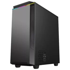 la caja compacta de media torre del paladin t801 cuenta con una ventana lateral de vidrio de fácil apertura con tornillos de una sola pieza y tiras argb superior e inferior. puede controlar sin esfuerzo la iluminación argb y los ventiladores a través del controlador gamemax v2.0 pwm + rainbow hub preinstalado, mientras que adaptive noise reduction se optimiza a través de los controles pwm. incluye 2x tiras de led argb y 1xpcs argb 12cm ventilador rainbow preinstalado para mejorar la estética de su construcción como se ve a través del impresionante panel de vidrio templado de paladin.también el modelo paladin tiene un soporte de tarjeta gráfica vertical opcional para proporcionar una posición de instalación flexible.