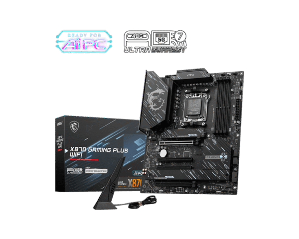 La X870 GAMING PLUS WIFI está diseñada con componentes duraderos para proporcionar una gran experiencia de juego. Diseñada con Wi-Fi 7 y 5G LAN, USB4 de alta velocidad, soluciones PCIe 5.0, Supplemental PCIe Power y funciones exclusivas EZ DIY, está preparada para el gamming 24/7 de los procesadores AMD Ryzen™ serie 9000.